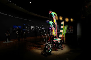 お祭り仕様カスタムバイク・魅寿帝 かつて日本の週末を華麗に彩った、暴走族の改造単車。そのうちでも「田舎の暴走族」になるほど、その装飾は過激になっていった。本展覧会のために、かつてストリートを席巻したバイカーたちが制作してくれた、夢の改造単車。これは現代の和様バロックである。